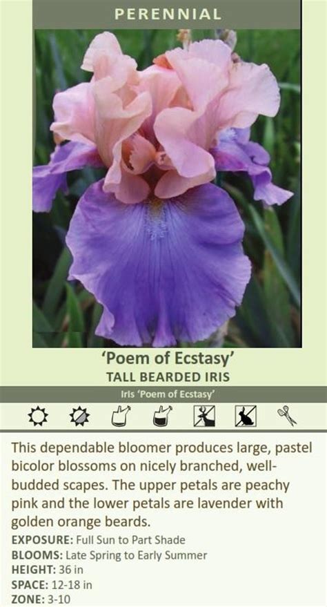 Poem Of Ectasy Iris . Tall bearded iris described as a dependable bloomer year after year, this pastel colored bicolor will grace your garden with its. Web poem of ecstasy: